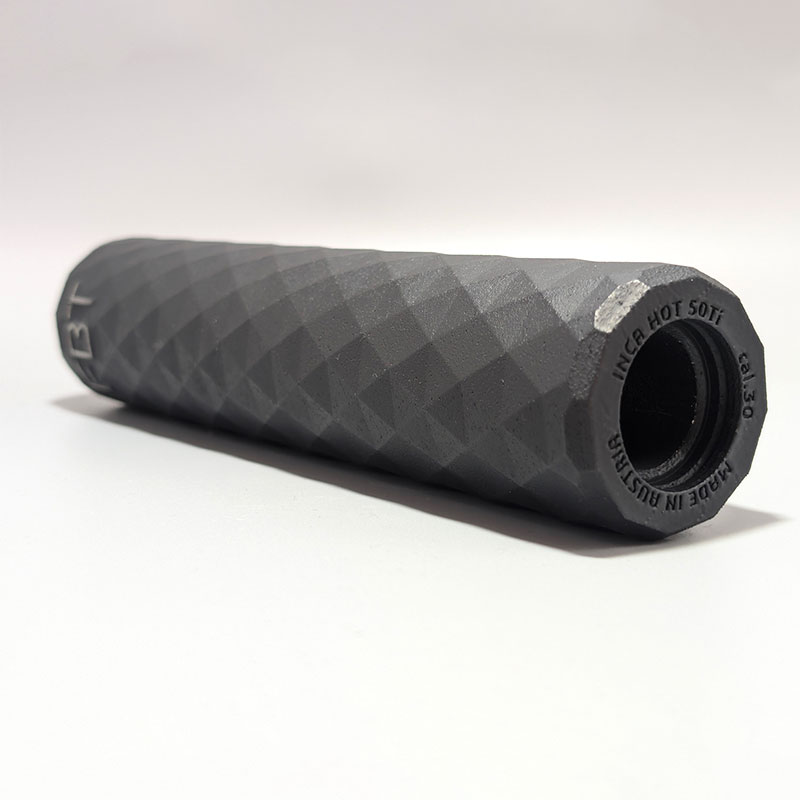 Könnyű és robusztus 3D nyomtatott titán rögzítésű hangtompító az INCA sorozatból minden kaliberhez. Bármely csőmenethez illeszkedik menetadapter vagy gyorsrögzítő segítségével.