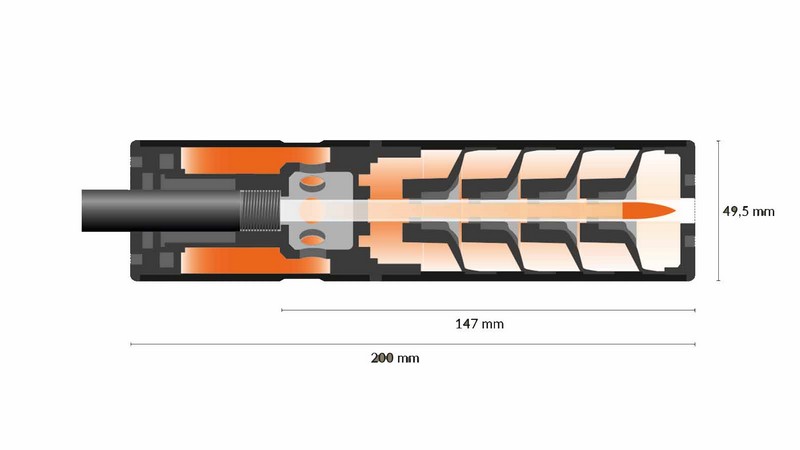 A Haenel JGR Over-Battel hangtompítók kiváló minőségű alumíniumból készülnek, és – akárcsak a hadászati szektorból származó rokonaik – csillagborítással vannak felszerelve. Ezek a hangtompítócsőben lévő alumínium mart részek ellazítják a torkolat ütését és nagyon stabilak. Akár sorozatlövésekre is alkamas.