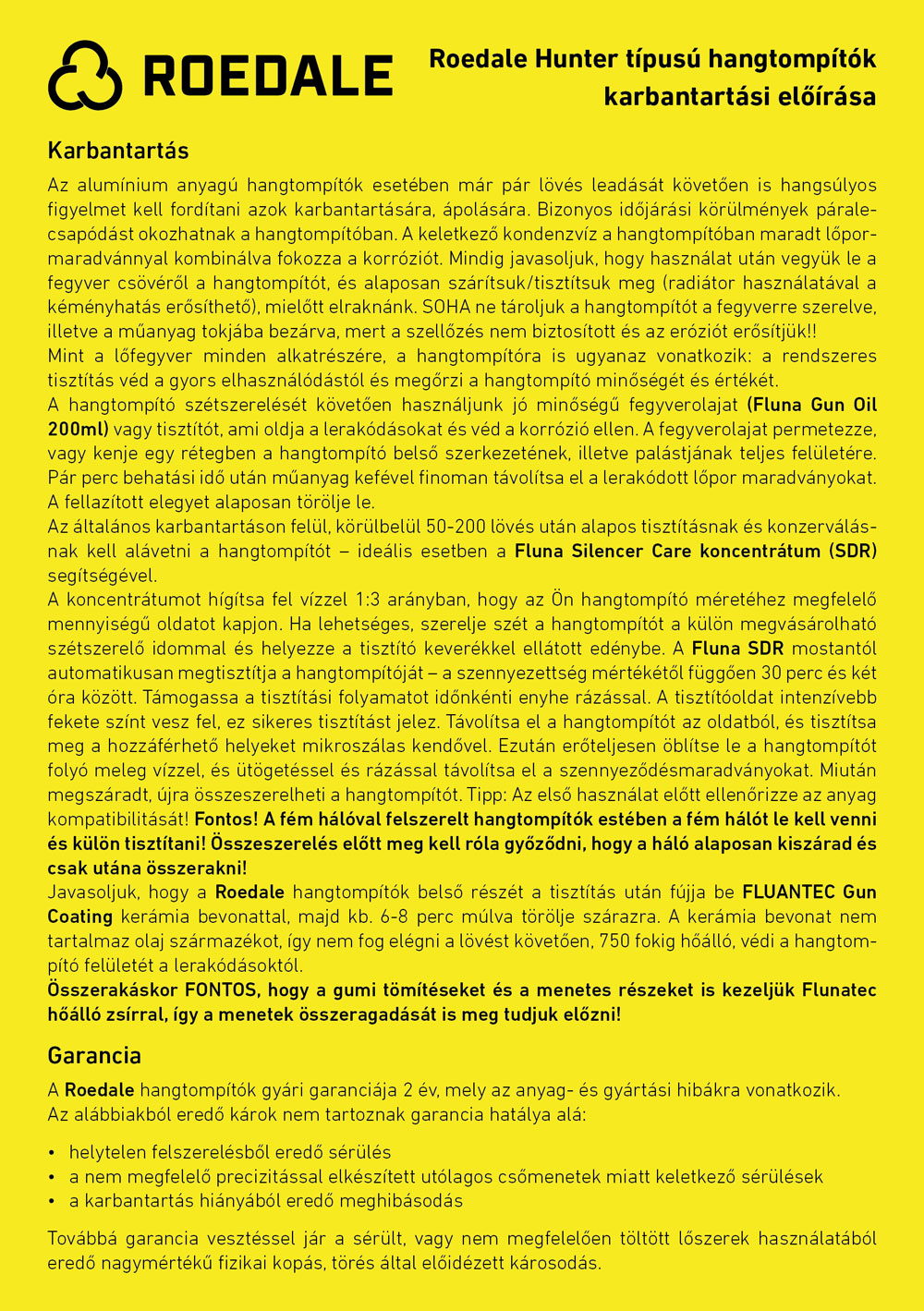 Roedale Hunter típusú hangtompítók karbantartási előírása